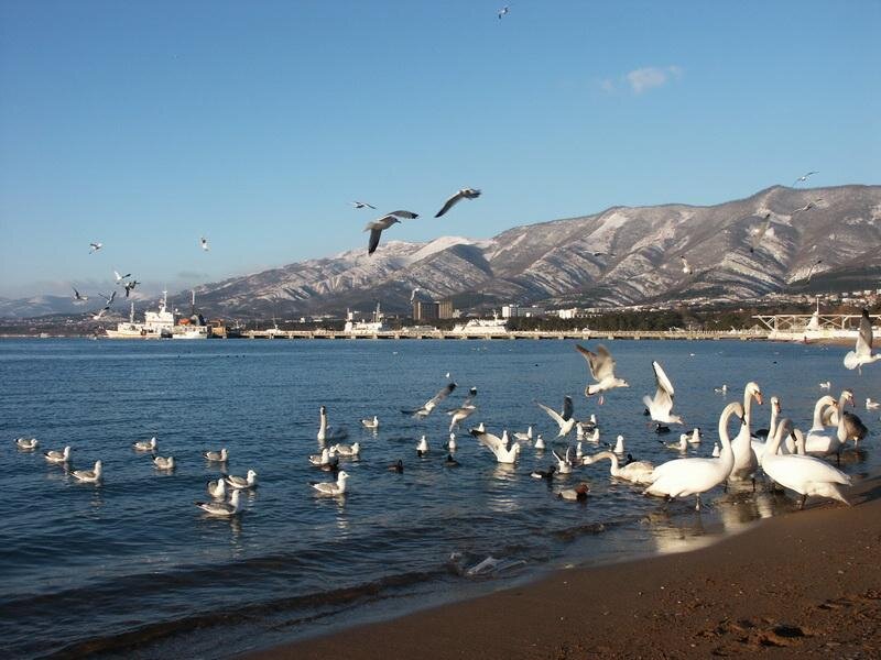 Всем доброго времени суток. Многие из нас хоть раз, но отдыхали на побережье черного моря в России. В основном туристы сюда приезжают в летний сезон, а также в начале осени. Но многие наверно задумывались, о том какая погода здесь зимой и отличается ли она чем то, от погоды других регионов нашей страны?! На примере города Геленджика – как одного из крупных курортов черноморского побережья, я попытаюсь вам сегодня рассказать. Деревья, чувствуя перемены в погоде, ещё осенью начинают сбрасывать листву, но, несмотря на это город выглядит достаточно зелёным, а причиной всему этому является то, что в городе много хвойных деревьев и кустарников, которые круглый год остаются зелёными. Но всё же, то, что зима наступила, очень чувствуется. На набережной города перестают работать кафе и рестораны. Закрываются экскурсионные палатки. Корабли отправляют в Турцию или поднимают на сушу, потому что зимой здесь часто происходят шторма. Почти всю зиму в Геленджике держится плюсовая температура.