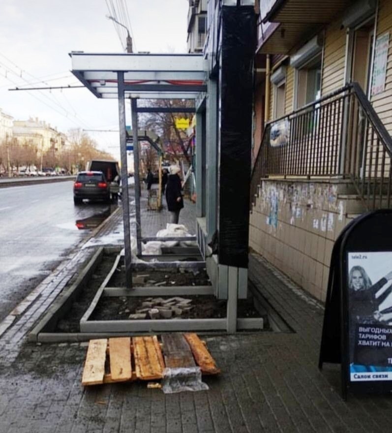 Ведь кто-то поставил эту остановку прямо к стене, прямо перекрыв тротуар?