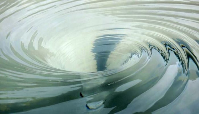 Что такое водоворот? Когда мы думаем о водоворотах, нам представляется огромная вращающаяся масса воды, которая затягивает людей и корабли, принося разрушение и смерть. Хотя водовороты и представляют опасность, они не в состоянии что-либо затягивать или поглощать. Давайте посмотрим, что такое водоворот. Ты, вероятно, наблюдал маленькие водовороты в ручье. Они образуются там, где берег вдается в поток и придает вращательное движение потоку. Вращаясь на небольшом пространстве, вода стремится к внешнему краю водоворота, создавая выемку в центре. Это результат центробежной силы. Именно эта сила держит воду в ведре, когда мы вращаем это ведро. Какова природа больших водоворотов, которые якобы представляют опасность для судов и людей? Когда одна волна настигает предыдущую, океанические потоки получают вращательное движение. Это особенно часто происходит в узких проливах между островами и участками суши. Если такой узкий пролив имеет достаточную глубину, при проходе по нему прилива мы наблюда