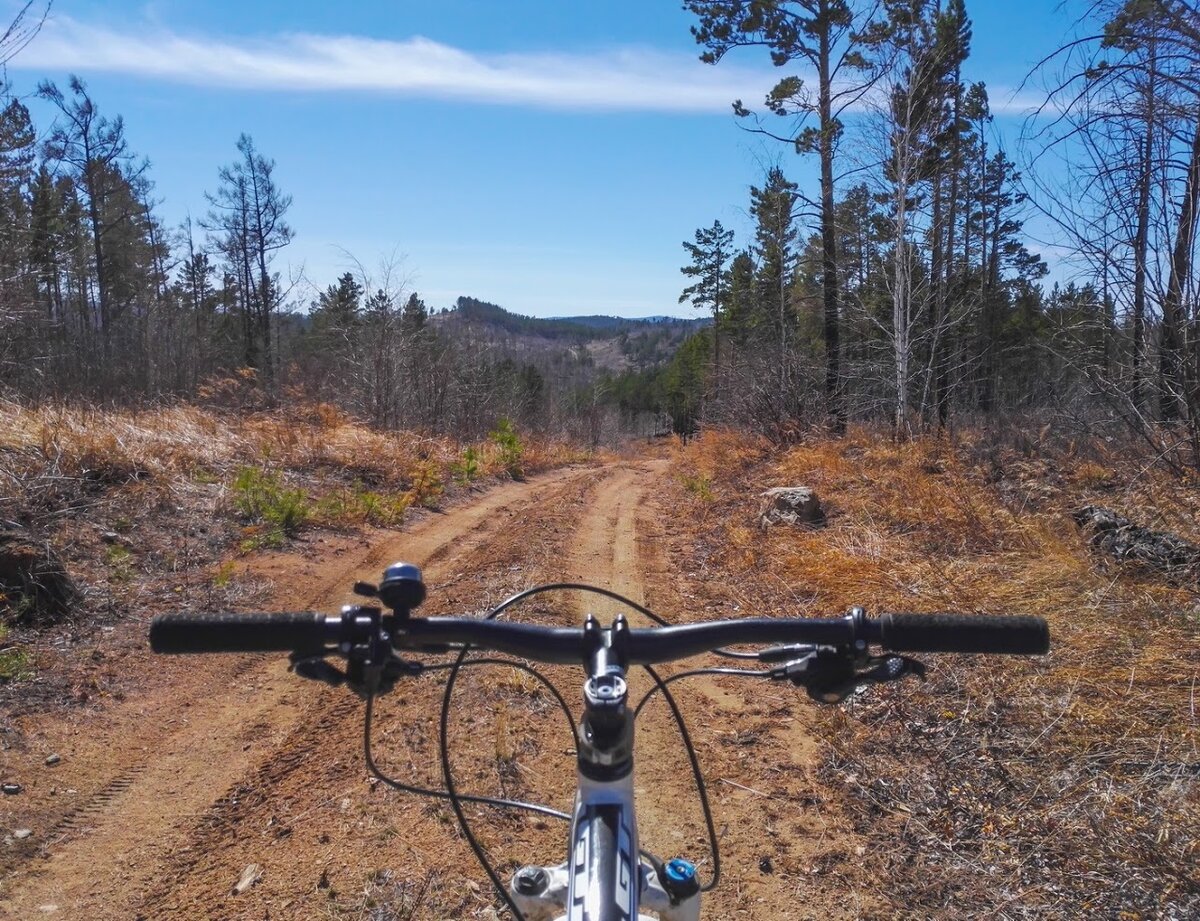 Катим! Не торопясь, разогреваемся, едем по асфальту. Затем, по неплохой гравийке до СНТ №71 «Южный». Проезжаем сквозь дачный кооператив до улицы, идущей вдоль Ингоды, по ней держим направление на юг. В конце кооператива хорошая дорога заканчивается и начинается лесная колея от лесовозов, фотографировать было некогда.