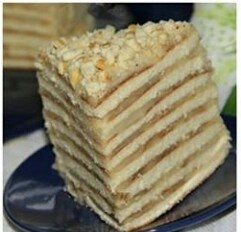 Ингредиенты: Для коржей: Для крема: Приготовление: Коржи: Муку просеять, смешать с разрыхлителем. В сгущенное молоко добавить яйцо, и постепенно небольшими партиями добавлять муку. Замесить тесто, оно должно быть эластичным и не липнет к рукам. Раскатать тесто в толщину 5-8 мм и вырезать круглые заготовки. На сухой сковороде выпекать с двух сторон до золотистого цвета. Крем: В кастрюле смешать молоко, муку, яйцо, сахар, ванилин. Включить медленный огонь и довести до кипения, постоянно помешивая. Варить 5 мин. Добавить сливочное масло и взбить миксером. Торт: Орехи обжарить и измельчить, но это не обязательно можно просто измельчить. Если остались обрезки теста то можно слепить и выпечь а затем измельчить. Первый корж смазать кремом и положить второй и так до конца. Поверхность и боковые стороны смазать кремом. Боковые стороны обсыпать крошкой, а поверхность орехами. Можно также смешать и все обсыпать орехами с крошкой. Поставить в холодильник на 2-4 часа чтобы настоялся. Торт готов. Пр