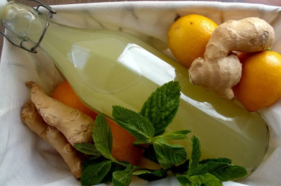 Имбирный эль – что это такое? Имбирным элем преимущественно называют слабоалкогольный, сильно газированный напиток, в котором доминирует насыщенный аромат имбиря. По внешнему виду его сложно отличить от настоящего пива, поэтому его частенько используют в киноиндустрии как визуальную замену хмельному напитку, дабы актеры не захмелели и продолжали свою игру на высшем уровне. Кроме того, данный напиток выручит тех людей, которые не почитают крепкое спиртное, но хотят поддержать дружескую компанию. Чаще всего имбирный эль употребляют в чистом виде без какой-либо закуски, однако известны случаи, когда он становится неотъемлемой частью шикарных коктейлей, сглаживая высокий градус и специфический аромат крепкого алкоголя. Ингредиенты: Получается: 4 л (примерно) Способ приготовления: Приготовьте 2 литровую простерилизованную банку или бутылку. Добавьте в нее дрожжи, 2 ч.ложки сахара и 2 ч.ложки молотого имбиря. Добавьте холодную воду и мешайте все до однородного состояния. Накройте марлей и п