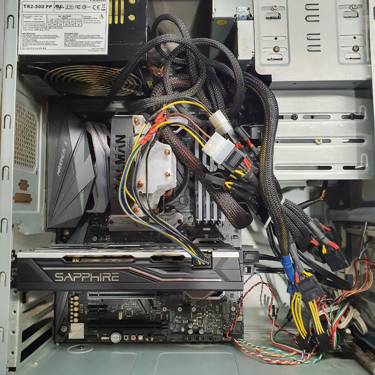 К нам в сервис обратился клиент, с проблемой не может установить ОС на компьютер. По телефону клиент сказал что купил новую материнскую плату, а windows установить не получается. Но вопрос, можем ли мы установить ОС на материнскую плату без системнинка и других комплектующих, нас немного насторожил! Как же он там сам менял материнскую плату.... Через пару часов принесли нам это чудо, описывать нет смысла просто посмотрите фото. Как обычно, ничего удивительного нет. Хаос с проводами.... Затем стали разглядывать дальше: В корпус не залазила видеокарта, ничего страшного есть же пасатижи... Дорогая материнская плата, прикрученная на два болтика, дорогая оперативная память и т.д. В общем по итогам диагностики пришли к заключению что при установке что-то, где-то закоротили и сгорел процессор и материнская плата. Предложили провести углубленную диагностику выяснить что же привело к неисправности, но для этого требуется больше времении, клиент отказался, сослался на то что нужно срочно...
