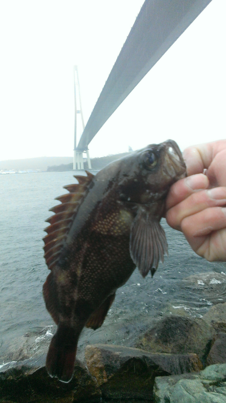 Ловили всего два часа на стрельбы ночные нужно было ехать . Счет открыл Антон вытащив спустя часок первого своего в жизни терпуга ( счастья было))) терпуг был не большим но красивый)) минут двадцать спустя мне в руку четкий, мощный удар - подсекаю чувствую есть и начинаю выматывать - но не все так просто с данным красавцем он уходил три раза в камни и не мог я его выдернуть несмотря на то что удилище хигаши морское. Но все таки я достал его на вид более кг.после поймали я два Антон одного мебарикаи на этом рыбалка закончилась. Вся рыба была отпущена!! Мало фото сделать успел так как лупил ливень и сенсор просто отказывался работать с мокрыми руками))) а мокрые были не только руки- под конец рыбалки боковым дождем нас промочило насквозь. Та