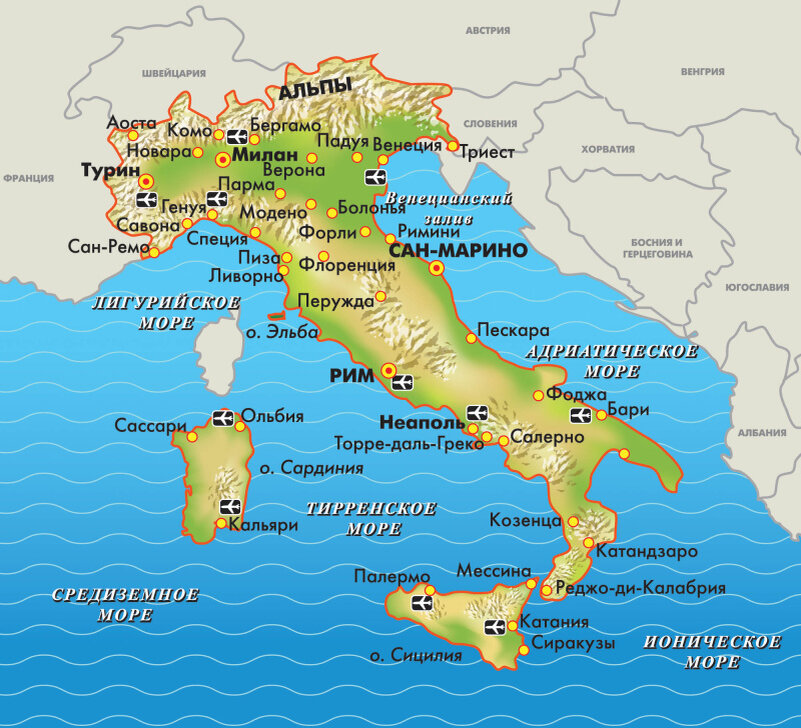08:00 – 11:00 Перелет Москва-Неаполь, авиакомпания Аэрофлот. Время в пути - 4 часа.