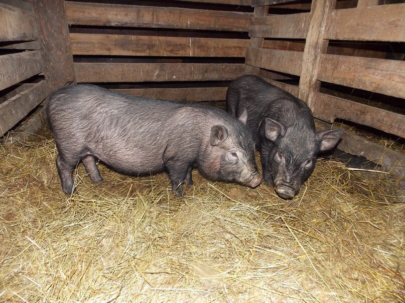 - Также покупаем двухмесячного самца. Необходимо, чтобы каждая особь вьетнамской свиньи была приобретена из разных мест и линий, дабы не допустить кровосмешений.