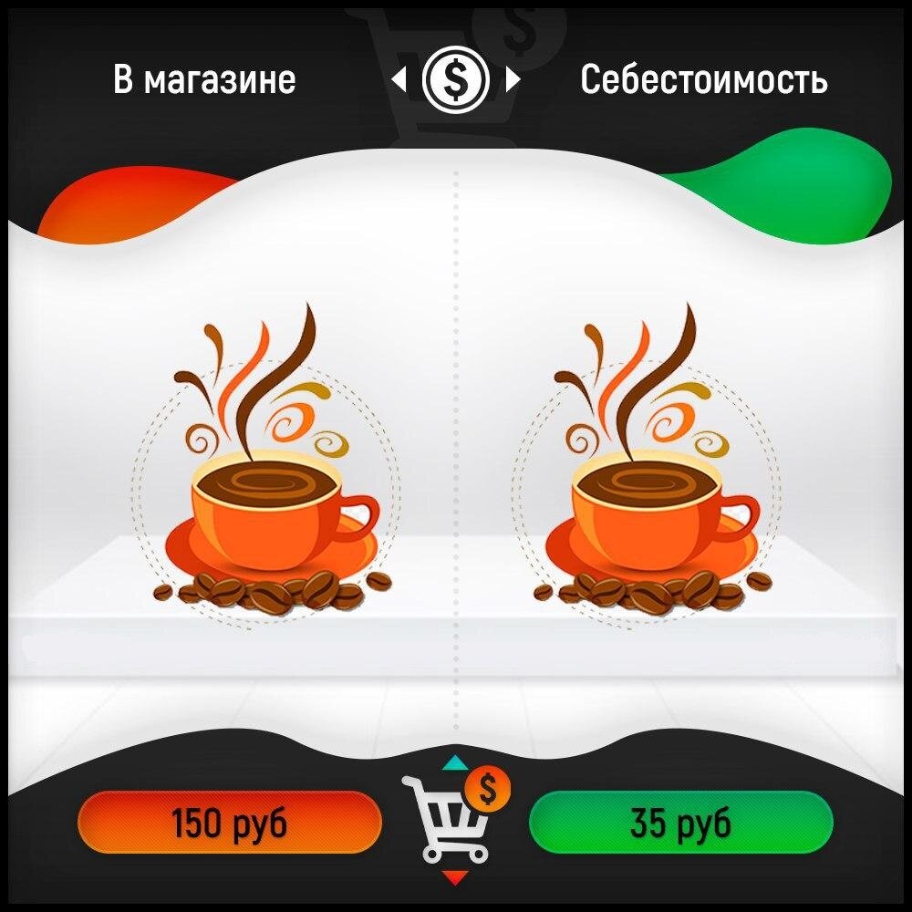 Кофе считается одним из самых маржинальных товаров, наценка на него в рознице составляет сотни процентов. Себестоимость чашки кофе 35-40 руб. Цена складывается из: Зерно, молоко, стаканчик - 20%. Зарплата сотрудникам, аренда помещения, коммунальные платежи и наценка продавца - 80% Кофейни приобретают зерно за 70% от привычной цены в магазине. Таким образом они экономят за счёт оптовых покупок