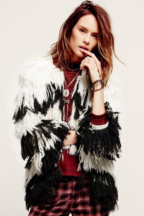 Подбираем идеальный вариант по типу фигуры и росту Женщины любого возраста могут носить одежду с оторочкой нитями. Так, зрелым дамам к лицу пончо, кардиганы и шарфы с бахромой из шерсти, из аксессуаров — аккуратные сумочки и ридикюли. Пышнотелым девушкам стоит выбирать одежду с «лапшой» средней длины — на подоле юбок, платьев, а также на верхней одежде. Короткая контрастная бахрома противопоказана, поскольку вставки могут деформировать фигуру. Девушки с фигурами песочные часы и груша могут подчеркнуть идеальные формы поясом с длинными нитями. Чтобы сбалансировать широкие плечи и узкие бедра нужно носить вещи, которые придают нижней части тела объем — юбки и платья с бахромой у пояса. Невысокие девушки могут визуально добавить несколько сантиметров к росту, если наденут обтягивающую юбку с длинной «лапшой». Подбирайте верх и обувь в тон юбке, тогда вы будете казаться выше и стройнее. Бахрома и мужчины: модные и актуальные образы 2019 Выбор для мужчин невелик: или ковбой, или стиляга. Ку