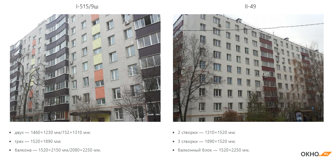 Дома проектируют согласно СНиПам. Поэтому оконные проемы в большинстве случаев отвечают единому стандарту. С его учетом вы можете рассчитать действительные размеры окна. Соблюдение нормативов в строительстве направлено на безопасную эксплуатацию остекления, на обеспечение комфорта жильцов. Самовольно сокращать габариты проема недопустимо. Из этой статьи вы узнаете, какие бывают размеры пластиковых окон в панельных домах. Остекление в типовых девятиэтажках Серийные девятиэтажные дома стали возводить в 60-80-е годы. Более позднее плановое их строительство предусматривало изготовление ЖБ-плит на заводах. В результате величина окна в панельном здании с 5 и 9 этажами стала фиксированной. I-515/9ш (515/9м) — стало первой постройкой в серии брежневок. В 70-е годы в Москве начали строить дома II-49 и II-57. Типовые размеры окон в зданиях Параметры зависят от завода-изготовителя ЖБИ, от условий их эксплуатации. Иногда жильцы меняли проем самостоятельно. Популярные серийные дома Прежде чем рассч
