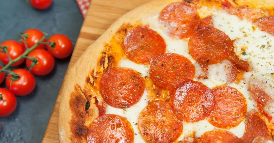 салями — 120 г Способ приготовления 1. Приготовим тесто. Растворяем дрожжи в воде, добавляем 10 г соли, 30 мл оливкового масла и 200-250 г муки. Вымешиваем однородное и гладкое тесто. Накрываем полотенцем и оставляем на 1 час. Затем делаем обминку и оставляем ещё на 3 часа. 2. Для соуса разминаем помидоры вилкой, добавляем 40 мл оливкового масла, соль, чёрный молотый перец, сухой орегано по вкусу и рвём руками свежий базилик. Перемешиваем. 3. Для начинки моцареллу рвём руками на небольшие кусочки, салями нарезаем тонкими ломтиками. 4. Стол присыпаем мукой, раскатываем тесто в круг, перекладываем на противень, смазанный оливковым маслом. Тесто смазываем соусом и запекаем в духовке при температуре 250 градусов 10 минут. Добавляем салями и моцареллу, запекаем ещё 4 минуты. 5. При подаче украшаем салями и орегано. Приятного аппетита! Еще больше рецептов на сайте tveda.ru Любите читать Дзен Телеканала «Еда»? Расскажите свое мнение о материале в комментариях и ставьте лайки