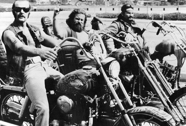 Чоппер – это не просто мотоцикл. Чоппер – это даже не стиль и не культура. Чоппер – это дух. Дух Свободы, воплощённый в металле. Давайте немного окунёмся в историю. После великой депрессии и тяжкой для мотопроизводителей конкурентной борьбы с дешёвыми автомобилями Ford’а в США осталось три крупных компании, производящих мотоциклы. Это были Harley Davidson, Indian и Crocer. Причём, вплоть до Второй Мировой Войны байки Crocer были практически непревзойдёнными в техническом плане. Но компания не сумела вовремя, что называется, «подсуетиться» и не заручилась военными контрактами, что привело к её выходу из бизнеса после войны. Конкурентная борьба мотопроизводителей в тридцатых годах сделала популярными гонки на мотоциклах, в которых участвовали не профессиональные гонщики, а обычные мотолюбители, которые выступали от собственного имени либо, в крайнем случае, представляли какую-нибудь местную мотомастерскую. Тогда-то народ и стал снимать с мотоциклов всё лишнее, чтобы ездить не мешало. Калифорнийский боббер Большая часть гонок и прочих мотоциклетных мероприятий проходила в Калифорнии – ездить на байке там можно круглый год. Это привело к тому, что в Калифорнии в сороковых годах содержалось самое большое количество байков на душу населения. Частенько парням, участвовавшим в гонках, приходилось перемещаться между местами их проведения на том же аппарате, на котором они и гоняли. Всвязи с этим, помимо выжимания максимума из двигателя, байки стали также подгоняться и под шоссейные условия. Это привело к появлению таких атрибутов, как например высокий руль – ape hangers, – оказавшийся очень удобным на шоссе. Он более равномерно распределял нагрузку на мышцы ездока и в целом создавал более комфортную посадку. Название ape hangers, которое буквально можно перевести как «обезьянья вешалка», явно намекает на то, что байкер с вытянутыми на максимальную длину руками слегка смахивает на обезьяну. Затем кто-то из этих ребят первым заменил переднее 16-дюймовое широкое колесо на более тонкое 21-дюймовое, что помогло в большой мере улучшить управляемость мотоцикла. В немалой степени формированию облика калифорнийского боббера (предшественника классического чоппера) поспособствовали власти Калифорнии, издав закон об обязательных ручках для поддержки пассажиров. В среде владельцев бобберов мало кому хотелось навешивать на байк всякие там ручки, да ещё и обязательные. Альтернативой стало появление так называемого sissy bar, который одновременно служил спинкой пассажиру и поддерживал заднее крыло. Многие использовали его также в качестве импровизированного багажника, привязывая к нему тюки с вещами. Частенько при отсутствии пассажира такие тюки располагали максимально удобным образом так, что они образовывали комфортную спинку для райдера. Кроме того, это приспособление было положительно воспринято властями – ведь теперь пассажиру было за что держаться. Кроме того, байкеры стали делать своим аппаратам загнутые вверх выхлопные трубы с раструбами в виде рыбьих хвостов. Выходное отверстие в таких трубах, которые назывались up-sweep fishtail pipes, получалось очень узким. Загнутость вверх позволяла без проблем закладывать крутые правые повороты, избегая чирканья трубами об асфальт, а узкое выходное отверстие многим парням помогло избежать штрафов за загрязнение окружающ