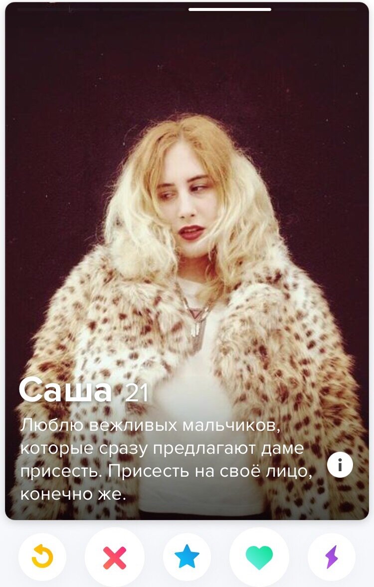 Вчера одна подписчица телеграм канала про тиндер прислала мне #наразбор своё описание в профиле Тиндера. Напоминаю, что вот тут: http://andrusevich.tilda.ws/efir я принимаю конкретные примеры описаний и разбираю их, чтобы помочь вам красиво, понятно, доступно и привлекательно написать о себе на сайте знакомств и привлечь именно тех людей, которых вы хотите. Описание доставило мне радость и эстетическое удовольствие. Хотя кое-что мы в итоге там ещё подправили, улучшив. Привожу практически в неизменном виде (это перевод, что-то я переведу по-своему, не теряя глобально смысла): Мне нравятся простые и весёлые вещи. Изучать разные культуры и посещать исторические достопримечательности. Я считаю, что права человека, интернет и пенициллин - три величайших достижения человечества. Я НЕ ищу одноразового секса. А ищу людей для приключений, дружбы или чего-то большего. Хотелось бы встретить кого-то, кто ценит доброту, честность, уважение и семейную жизнь. Это описание себя - удачный приме