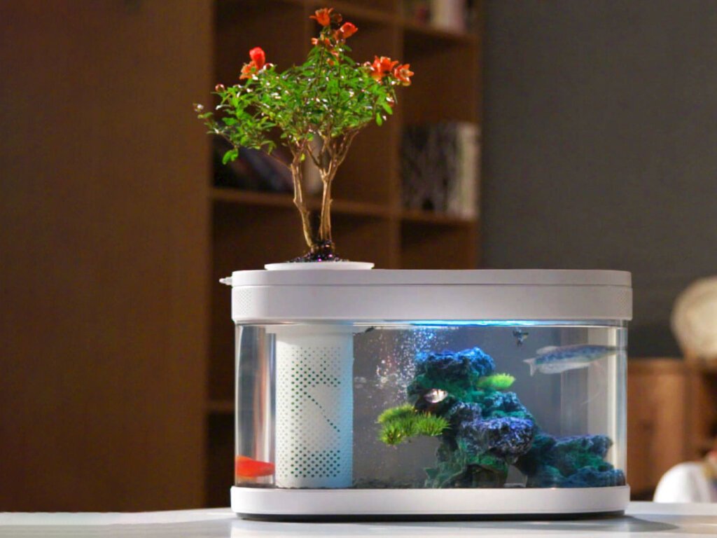 На краудфандинге Xiaomi имеется несколько моделей аквариумов. Сегодня речь пойдет о небольшом аквариуме Fish Tank, который станет отличным дополнением в любом доме или офисе. Он не займет много места, ведь размеры составляют 382 × 166 × 229 мм. Но аквариум привлекает к себе внимание вовсе не габаритами, а возможностями. Стоит отметить и дизайн резервуара. Аквариум Сяоми получил изогнутый корпус, благодаря чему с любого ракурса можно наблюдать за созданной экосистемой. Изготовлен корпус из ABS-пластика и органического стекла. Кроме этого, резервуар оснастили разноцветной подсветкой. При этом не стоит беспокоиться за энергопотребление, ведь оно очень низкое, Fish Tank может заряжаться от внешнего аккумулятора. А теперь о возможностях. На крышке аквариума Xiaomi имеется отделение, где можно разместить растения, аквариум позаботится о их поливе. А самое главное — он устроен таким образом, что экологический баланс будет поддерживаться самостоятельно. Fish Tank имеет 4-ступенчатую систему ф