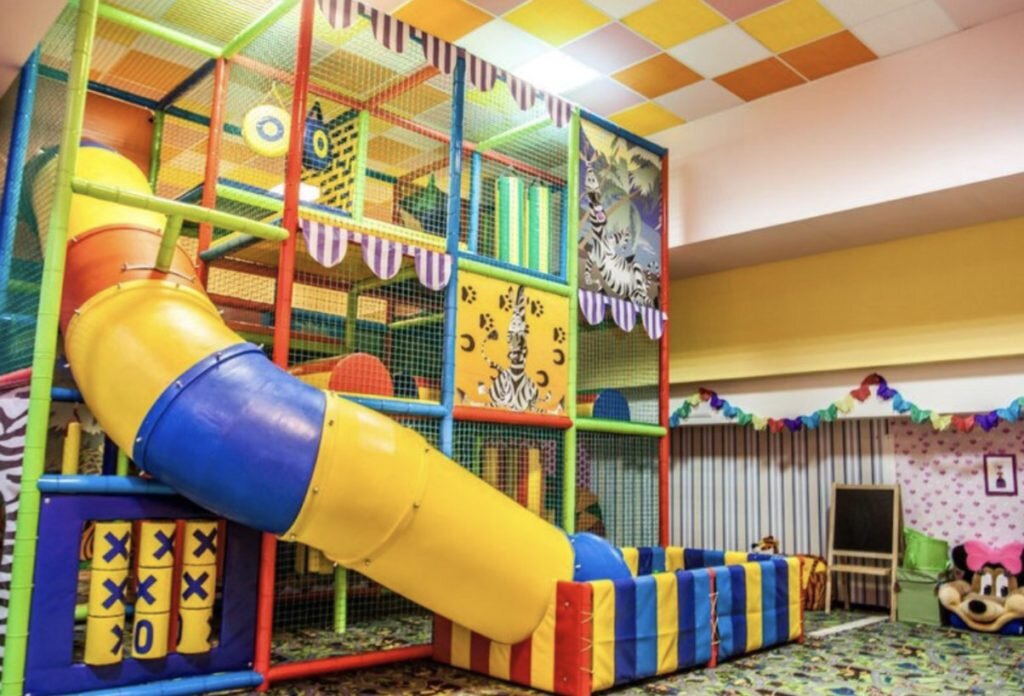 Недалеко от нашего дома есть довольно милое семейное заведение с домашней кухней. Там всегда рады (ну или делают вид, что рады) семьям с детьми. Половину зала занимает большой игровой лабиринт с бассейном из шаров, горками и всякими мягкими снарядами, по которым дети могли бы лазить (практически точная копия того, что на фото).