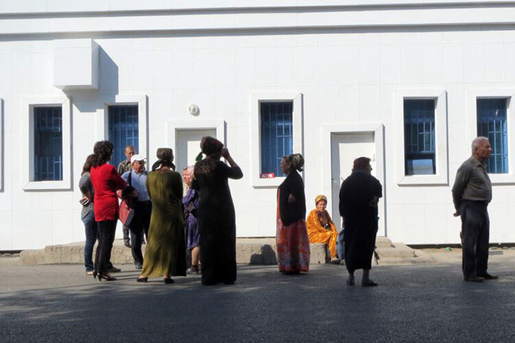 Люди у государственного магазина в Ашхабаде. Фото с сайта Azathabar.com Две женщины из Дашогузского и Лебапского велаятов (областей) Туркменистана пожаловались, что им отказались продавать продукты в государственном магазине в Ашхабаде. Об этом 13 ноября сообщило издание «Хроника Туркменистана». По словам женщин, на родине у них нет работы, поэтому они полулегально трудятся в столице в сфере коммунального хозяйства. Им постоянно приходится давать взятки проверяющим, чтобы оправдать отсутствие прописки. До недавних пор им ради этих взяток удавалось экономить, покупая еду в государственных магазинах. Но 12 ноября их прогнали из госмагазина «Каракум», заявив, что для покупки продуктов нужна ашхабадская прописка и выписка из домовой книги. Система госмагазинов в Туркменистане сохранилась с советских времен. Продукты продаются там по фиксированным ценам. Коммерческая торговля в стране не запрещена, но для большинства граждан рыночные цены оказываются слишком высокими. Поэтому перед госмага