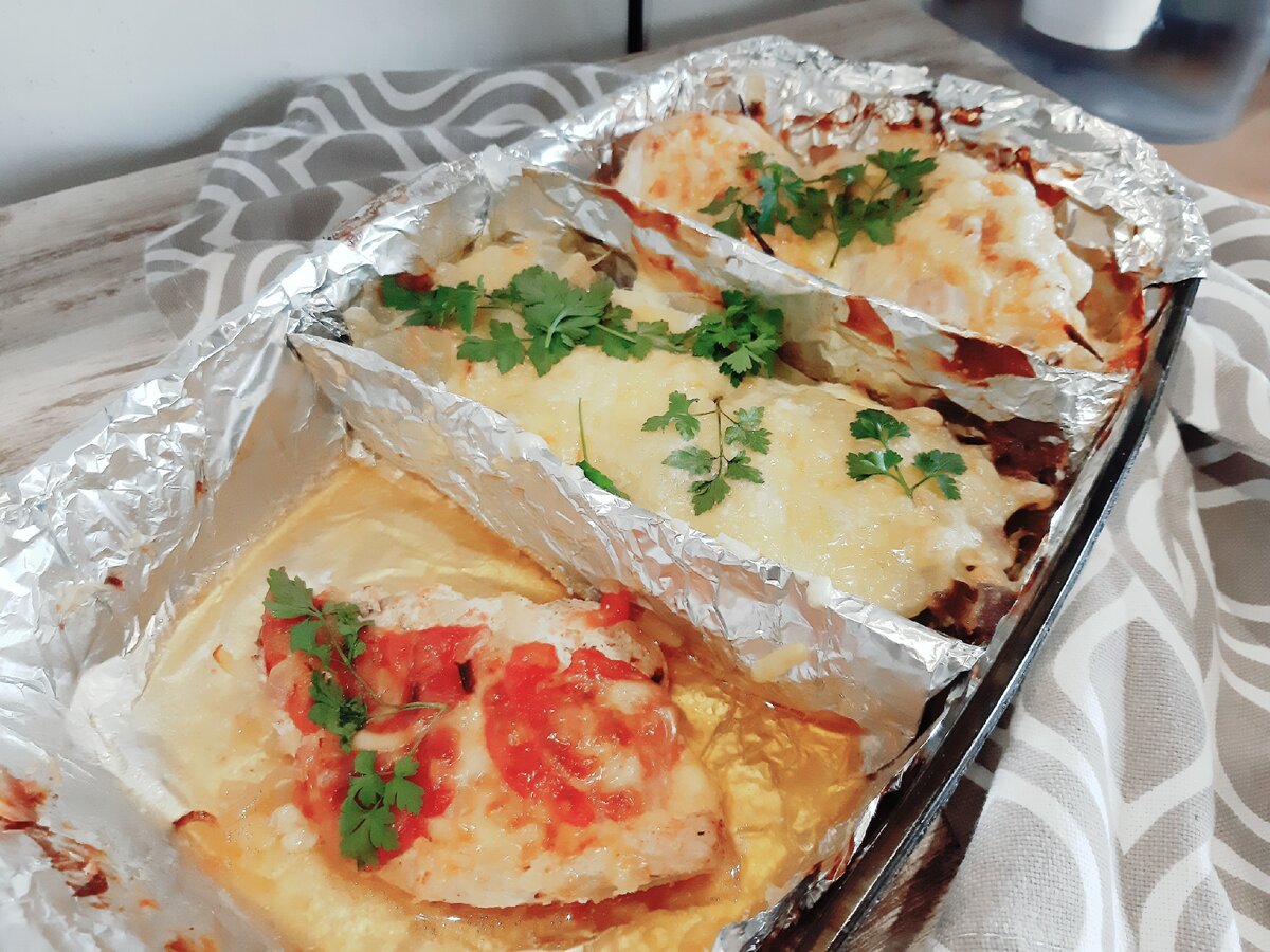 Чтобы сэкономить время и разнообразить своё меню, попробуйте приготовить сразу три блюда в одном противне. Многие готовят еду впрок на несколько дней. Но одно и то же блюдо может изрядно поднадоесть, а перемывать гору использованной посуды — лишняя трата времени. Чтобы сэкономить драгоценные часы и разнообразить своё меню, воспользуйтесь крутым лайфхаком и приготовьте сразу три блюда в одной посуде. Итак,сегодня готовим 🍴филе куриное,запеченое с помидорами и сыром 🍴филе индейки с картофельными слайсами 🍴куриное филе,фаршированное грибами и луком под сырной шубкой Сделать это очень просто. Для начала возьмите глубокий противень, застелите его фольгой и вставьте перегородки. Ваша форма готова. В качестве основы для всех трёх блюд можно брать мясо, рыбу, овощи — всё, что вы любите. Я выбрала в качестве основного ингредиента куриное филе и филе индейки и предлагаю вам приготовить её тремя простыми способами. ОТБИВНАЯ ИЗ КУРИНОГО ФИЛЕ С ПОМИДОРАМИ Промойте и отбейте куриное филе. П