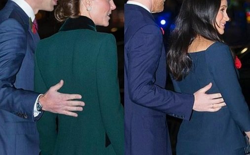 Пара принца Уильяма и его жены Кейт Миддлтон нравится очень многим. Любовь между ними можно заметить не только судя по троим детям, которых они воспитывают. Иногда забота и уважение видится в жестах и поступках Кейт и Уильяма. В прошлом году принц Уильям во время недели Памяти положил руку на спину супруге при выходе из Вестминстерского аббатства. Сама Кейт на свадьбе принцессы Евгении положила руку на колено герцога Кембриджского. Подробнее об этих моментах в статьях ниже. А сегодня хочется отметить вчерашний выход Кэтрин и Уильяма. Многие обратили внимание, что будущий король вел себя странно. Вернее, это конечно же, не странно, проявлять нежность к жене, но раньше он делал это достаточно редко. За вчерашнее мероприятие принц сделал это несколько раз. Обратите внимание, в первый раз он проявил ласковый жест у театра Troubadour White City во время встречи с добровольцами из организации "Give Us A Shout". Затем герцог Кембриджский уже внутри театра снова приобнял жену. Вроде бы такая