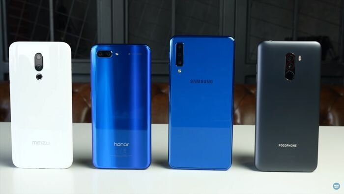 Конечно же, некоторые особенности смартфонов мы не учитывали в данном сравнении. Так Honor 10 может похвастаться наличием NFC. А у Galaxy A7, помимо того же NFC, в наличии сверхширокоугольная камера. У Pocophone имеется инфракрасный датчик, который служит для разблокировки по лицу. Ну, а Meizu снабдили сканером отпечатков пальцев расположенным прямо под дисплеем. Кроме того, у него очень красивый симметричный корпус, но и ценник самый высокий из данной четверки.