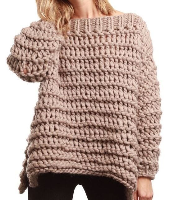 Свитер из крупной вязки Еще одна разновидность объемного свитера, которая отличается тем, что узоры на нем всегда большие и широкие. Рисунки на свитере толстой вязки могут не быть излишне объемными, но всегда выделяются на общем фоне свитера. Такие кофты редко нагружают дополнительными элементами вроде пуговиц, но если они есть, то обязательно массивные и объемные. Свободный свитер (oversize) Настоящий хит сезона и находка для любительниц комфорта. Такая кофта совершенно не сковывает движений, а образу придает воздушности и романтичности. Может быть удлинена или укорочена, но если не дополнена внизу планкой – резинкой, может отличаться ассиметричным краем. И конечно не обойтись без свитера с воротником Неимоверно модными сейчас считаются вязаные свитера с большим и широким воротником – трансформер. Такой воротник может полностью отворачиваться и использоваться в качестве головного убора, а может складываться на шее, как хомут. Довольно интересным и популярным решением может ст