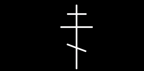 Мы смотрим - нам нормально. "Автор" смотрит и задается вопросом, почему вертикальный столб пересекают 3 горизонтальные линии, а не одна. Ну не знаю даже, можно узнать здесь: "Восьмиконечие — наиболее соответствует исторически достоверной форме креста, на котором был уже распят Христос, как свидетельствуют Тертуллиан, святой Ириней Лионский, святой Иустин Философ и другие". А почему нижняя планка косая - здесь: "Посреде двою разбойнику мерило праведное обретеся Крест Твой: овому убо низводиму во ад тяготою хуления, другому же легчашуся от прегрешений к познанию богословия". Другими словами, нижняя планка выполняет символическую функцию весов человеческой жизни, праведной или грешной.