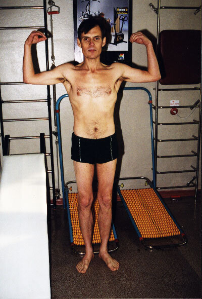 В 1998 году я повторил голодание в медицинском центре, где и сейчас работаю. Центр перед этим послал к Николаеву двух врачей на стажировку, вот они мною и занимались потом. Отголодал уже 20 дней, а сбросил не 12кг, как в прошлый раз, а всего 8 кг. Организм был уже тренированный! Моё голодание снимало местное ТВ, а потом засняло меня через пару месяцев после выхода, я опять резко помолодел и очень хорошо смотрелся среди молодых людей от 25 до 30 лет. Впрочем этот эффект известен уже давно и широко. В Альпах Австрии и особенно Швейцарии есть санатории, где регулярно голодают звёзды западный экранов и вообще очень богатые люди. Бывший канцлер Германии Коль раз в год проходит курс семидневного голодания в Австрии. А кинорежиссёр Андрей Михалков-Кончаловский ежегодно голодает по 10 дней в швейцарском санатории. Недавно туда начал ездить и Никита Михалков. День голодания там стоит 2000 долл. И уже почти все забыли, что в Москве в клинической больнице №68, в отделении профессора Николаева можно проделать то же самое, да ещё на более высоком уровне, причём – если ты больной, то бесплатно, по путёвке Минздрава, а если здоров, то за мизерные деньги! Нет пророка в своём Отечестве!