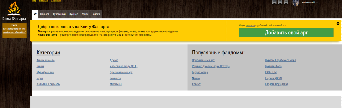 Сайт, который придуман создателями Книги Фанфиков. О чудо, жива. И я даже смогла на нем зарегистрировать новый аккаунт. Два дня мучений, и я пробилась сквозь ошибки. Авторы сайта с 15го года не подают признаков жизни, но новые арты все время добавляются на заглавную страницу. Зачем она вообще мне сдалась, эта фигня? Затем, что от Виринка нет никакого фидбэка. Совсем. Как и пользы. А хочется все-таки найти определенный круг общения, читателей и сообщников. Да, все же дива, и поток людей на ней ней до сих пор стабилен. Единственное, хочется узнать у администрации, куда же они подевались, и сколько времени еще будут нелепые ошибки? Проект хорош, его стоило бы интегрировать на Кф, это тоже своего рода реклама. Вот на Литнете вообще не дрыгнуться, так хоть иллюстрациями. Девианарт вообще, по-моему не рассчитан на российскую публику. А ВК... Вк тоже стал во многом бесполезен. Сплошные "мимокрокодилы". Вот такой вот поток сознания. Ура, товарищи. Теперь я еще и там. Миксер всем в глаза).
