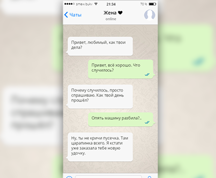 Жена разбила автомобиль своего мужа: подборка смешных СМС-переписок