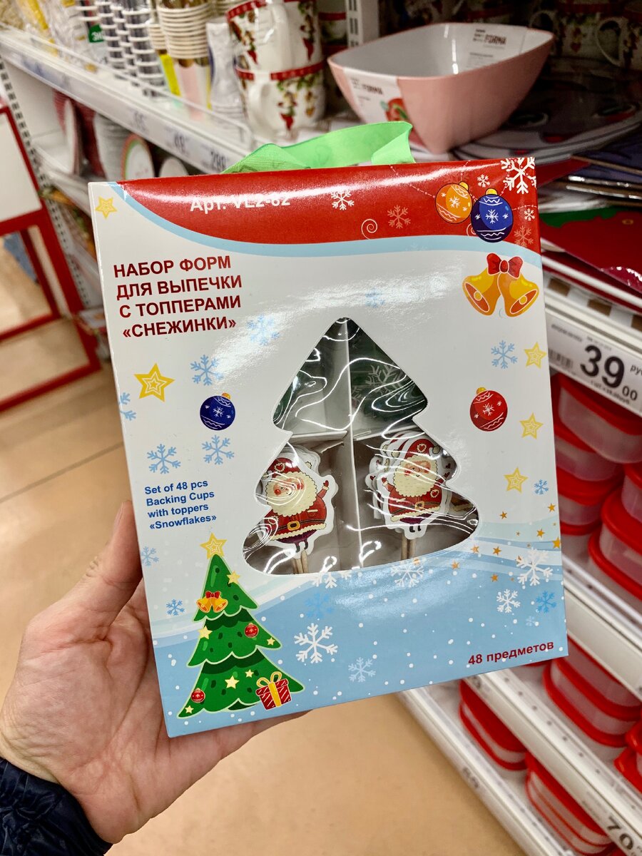 Привет! Наверняка Вы уже видели миллион статей с обзором новогодней посуды, игрушек и рецептов майонезных салатов😀. Я такое люблю, но в глазах уже рябит от золота и перламутровых переливов)). Как я поняла из увиденного - в Ашане нет ни одного толкового сервиза🤷♀️, который бы внятно выглядел и стоил, но в ёлочных украшениях им равных нет👍. А ещё меня очень порадовали такие вот штуки⬇️, которые я не могу выделить в отдельную группу🤷♀️. Если только по цене, а она у них не самая высокая - до 200₽⬇️. Подставка под горячее за 199₽. На мой вкус это вариант не для новогодней ночи, но для семейных зимних ужинов. Для сковородки с жареной картошкой, которую все домашние едят из одной посуды😅. Набор форм для выпечки с топперами за 159₽. Вообще в магазинах можно купаться в формочках для выпечки)). Но этот набор понравился тем, что в нем есть 24 формы для мелких кексов и 24 палочки с новогодними украшениями для этих же кексов. Кружка для зимнего кофе за 189₽. Может многим такой вариан