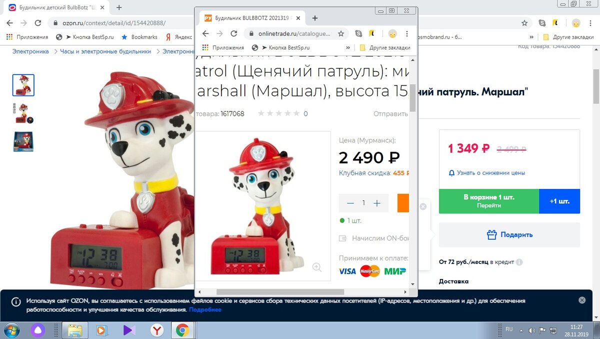 Об этом магазине могу говорить очень долго. Мнений покупателей о нем огромное множество, но последнее время все больше негативных из-за нарушений сроков доставки. Но в этой статье остановлюсь именно на скидках в рамках черной пятницы. Первое что предлагает нам OZON в черную пятницу - это скидка 50% на полугодовую и годовую подписку Premium. Так они будут стоить 799 и 1499 рублей соответственно. Не могу сказать, дешево это или дорого, но месячная сейчас без скидки стоит 319 рублей, поэтому, наверное выгода действительно есть. Вопрос, нужна ли она. Но об этом поговорю в другой статье. OZON в принципе часто предлагает честные реальные скидки и черная пятница - не исключение. Так, например, я смотрела детям будильник и в этом магазине на него сделали самую большую скидку (2490 - конечно, без скидок цена на online-trade.ru, но на wildberries он стоит 1945 со скидкой) Естественно, все товары промониторить я не в силах, но могу сказать, что честные скидки есть. По моим наблюдениям на OZON в