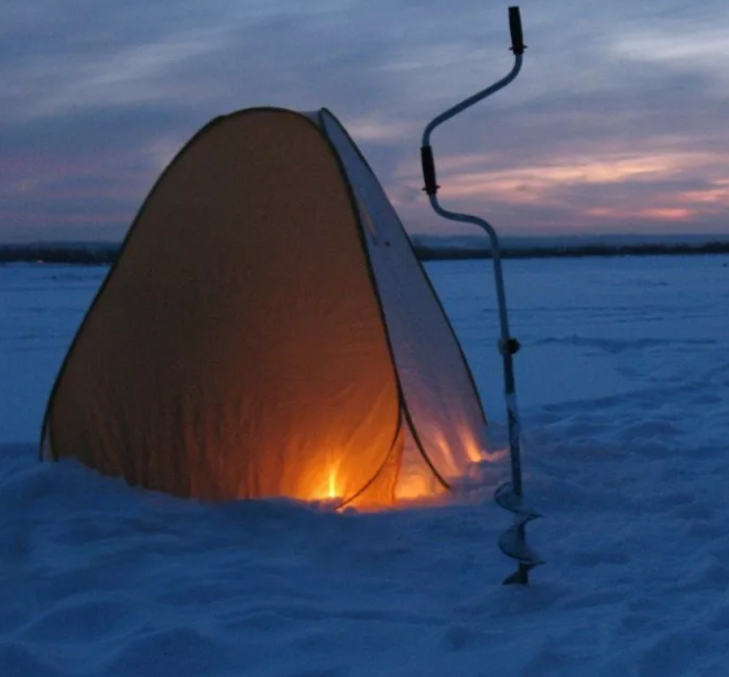Приветствую, рыболовы! Сегодня расскажу вам очень простой и бюджетный способ обогрева палатки. Сразу отмечу, что при таком обогреве не раздеться до рубашки и не заночевать, но лунки замерзать точно не будут и руки погреть об него можно. Итак для мини печки нам понадобятся две банки из под консервов, лучше использовать из под тушенки или фасоли, в общем продолговатые, чтобы свечка туда входила подлинее. Вскрытыми сторонами вставляем банки друг в друга, получился такой тубус. Теперь соединяем две банки с помощью маленького шарнира и маленьких саморезов. С другой стороны приделываем застёжку, неважно какую, лишь бы банки не открывались. Сверху конструкции приделываем ручку из проволоки, для того, чтобы можно было переносить или подвесить мини-печку. В дно вкручиваем саморез. Делается это для того, чтобы накрутить на него свечу, ради избежания её опрокидывания. Следующим шагом будет просверливание отверстий внизу банки по кругу, штук 6 будет достаточно для притока воздуха и вверху так же