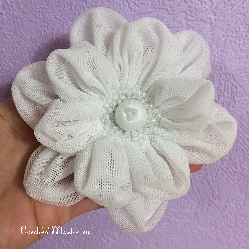 Всем добрый день. Отвлекаюсь (но ненадолго) от ёлочных игрушек и прочего зимнего, новогоднего декора и предлагаю сделать вместе со мной вот такой цветочек! Подобный цветок можно сделать не только из мягкой сетки, но и из любой тонкой ткани типа шифона или из тонкого мягкого кружева...