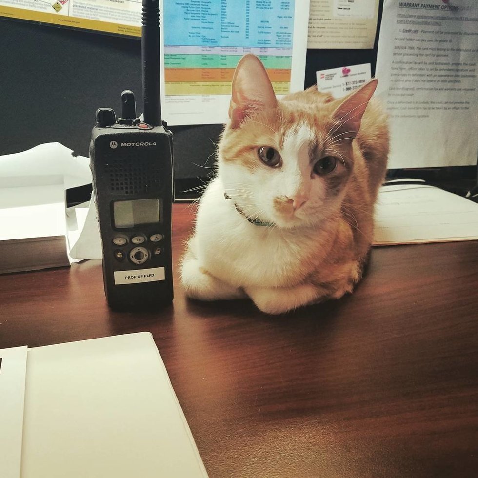 Привет! Сегодня расскажу тебе удивительную истории о одном коте, который стал работником полиции. Это произошло в полицейском департаменте который называется "Port Lavaca Police Department", в штате Техас. Сотрудники решили, что им не хватает лохматого друга. Но завели они себе не собаку, как обычно происходит в полиции, а кота! Как нормальному коту, ему дали имя. Его именем было - Капитан. Этого кота они взяли из одного приюта, произошло это примерно в апреле того года. Капитан сразу освоился со своей новой профессией. Он понял, что теперь его главная задача в жизни - это следить за порядком в городе и за выполнением работы в департаменте. Как видно на фотографии ниже, он уже освоился в новом месте и стал проверять отчёты. Может быть капитан это всего имя, но ему это явно так не кажется. Вот, он уже осматривает полицейскую форму на изъяны. Капитану даже выдали его новую персональную форму, специальную для котов. Ему она явна нравится. Капитан спит где хочет. Ему не важно, мешается о