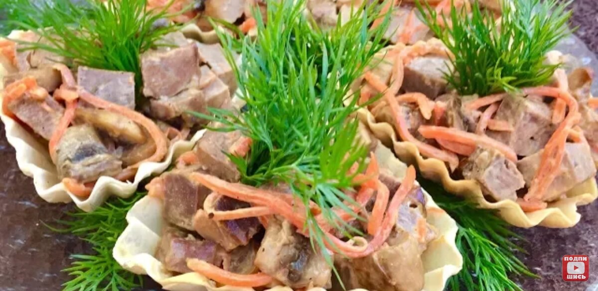 Тарталетки с говяжьим языком и грибами. Несложный рецепт хорошей закуски
