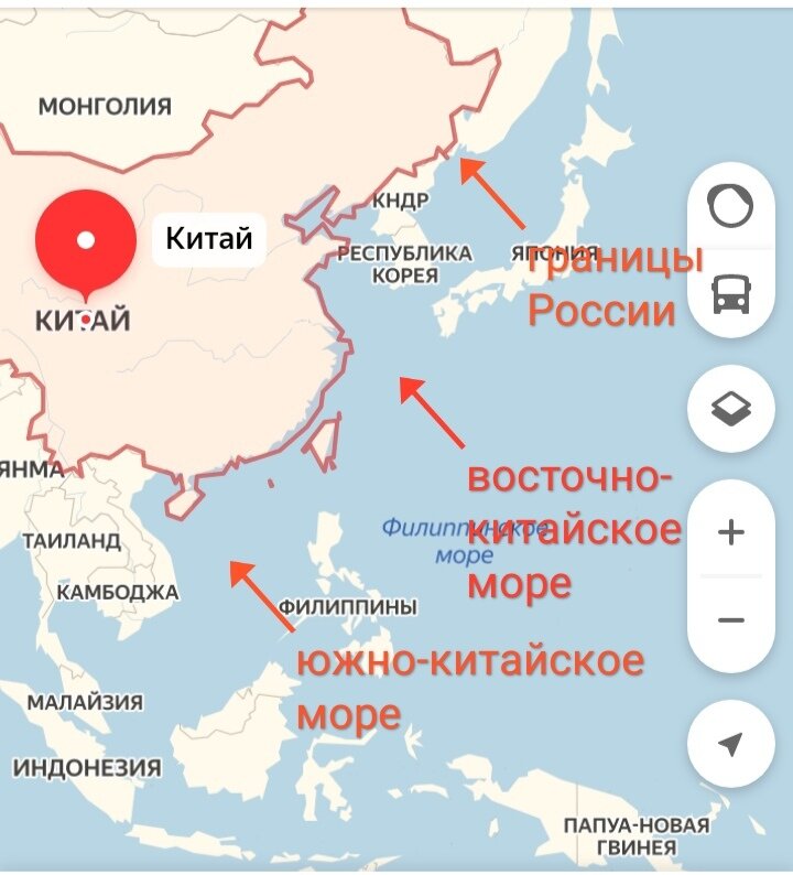 Эээ... От Южно-китайского моря до границ РФ приличное