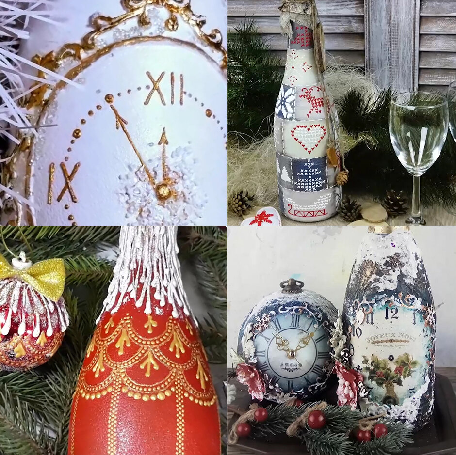 Впереди предпраздничный месяц самое время создать оригинальный подарок для близких или украшение праздничного стола 🍾 Мы собрали для вас самые интересные и актуальные идеи декора новогодней бутылки шампанского с помощью акриловых красок! Инстаграм Творческой Студии Таир: https://www.instagram.com/tairkraski_hobby/ Подписывайтесь на канал! Оценивайте работы! Комментируйте! :) 1. Новогоднее шампанское. МК Ютты Арт. Имитация лепнины и работа с поталью. 2. Бутылка шампанского в скандинавском стиле. Мастер-класс Удовиной Наташи. 3. Стильный новогодний комплект: шампанское и ёлочный шарик — своими руками. МК Лены Тюленевой 4. Очень простой декор шампанского и новогоднего шарика. Мастер-класс Ирины Корнеевой