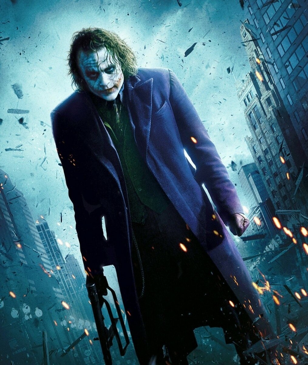 Темный рыцарь/The Dark Knight(2008), боевик с элементами драмы режиссера Кристофера Нолана. По количеству кассовых сборов кинолента стала четвертой в мире, собрав более 1 млрд долларов. Джокер - один из самых противоречивых персонажей. На вопрос "кто такой Джокер" большинство вам ответит, что это маниакальный неконтролируемый психопат, цель которого сеять хаос и творить террор. Однако, по картине Темный рыцарь мы видим, что за всеми его, якобы, спонтанными злодействами стоит четкий и продуманный до мелочей план. Готэм-сити - один из самых криминальных городов вселенной DC. Он наполнен всевозможными злодеями и коррумпированными чиновниками. И реальная, хоть и не очевидная, цель Джокера - очистить Готэм от той грязи, в которой погрязли он и его жители. Образ Джокера, в гениальном исполнении австралийского актера Хита Леджера, по праву можно считать одним из лучших кинозлодеев за всю историю. Эта роль принесла Леджеру 32 награды, в том числе Золотой глобус, Critics Choice Award и Оскар (