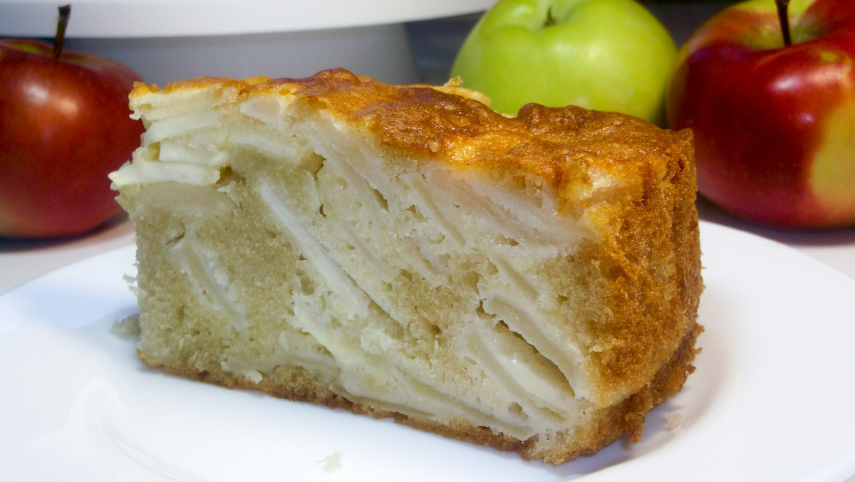 Готовую выпечку достать, остудить. Вынуть пирог с яблоками из формы, порезать на куски и можно подавать к чаю.
