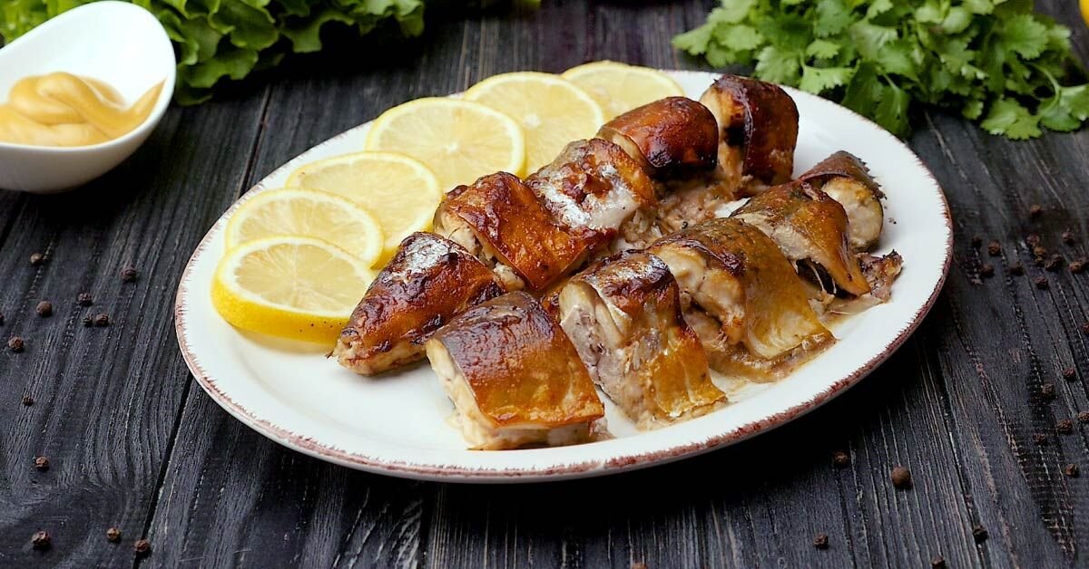 После этого переложить рыбу в форму для запекания и отправить в разогретую духовку на 20–30 минут. Температура в духовом шкафу 170-180 градусов. Скумбрия должна как следует зарумяниться, после чего достать, немного остудить и можно подавать на стол, в качестве закуски.