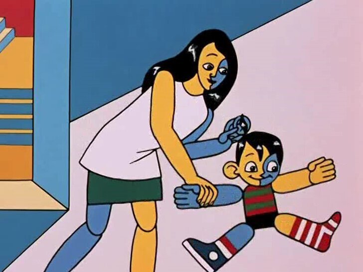 Мультфильм о зарождении гейм-зависимости, созданный скорее в стиле разноцветных клипов того времени. Яркие цвета, поп-арт рисовка, быстрый переход от одного кадра к другому, мигание цветов. Как-будто смотришь гонщика Спиди, а не советский мультфильм.