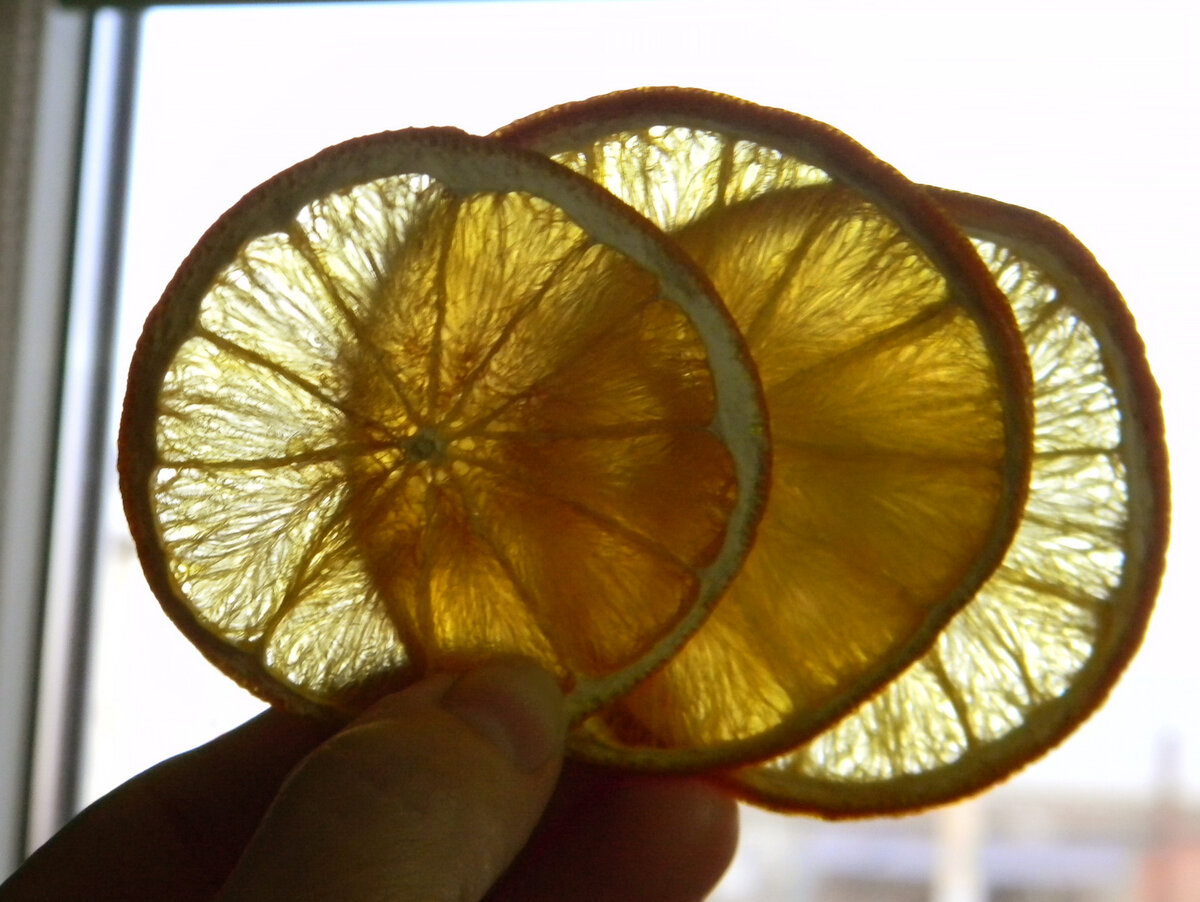 Эти маленькие солнышки - такое чудо! Они могут стать украшением торта, рождественской выпечки, да и сами по себе вполне самодостаточны. Их можно сделать, положить в банку и бросать потом по ломтику в горячий чай. Зимние вечера холодные и длинные. И зачастую так не хватает ярких цветов. Вот апельсиновые чипсы и будут в помощь. Вы можете сказать, что зимой можно взять просто апельсин, очистить и съесть. Можно, конечно. И все же, прозрачные желтенькие и хрустящие чипсы из цитрусовых - это другое. Это особое. Чипсы можно делать и из киви, и из лимона, ну и яблоко, конечно. А потом миксовать их по вкусу. А можно найти красивую коробочку и уложить ряд чипсов из апельсина, ряд из киви, часть из яблок или груш. Я их делаю без сахара. Хотя, можно использовать и сахарный сироп, в котором провариваются тонко нарезанные ломтики. Но мне нравятся натуральные, без дополнительного сладкого вкуса. В конце-концов, всегда можно ложку меда в чай положить, если захочется сладости. В общем, все просто. О