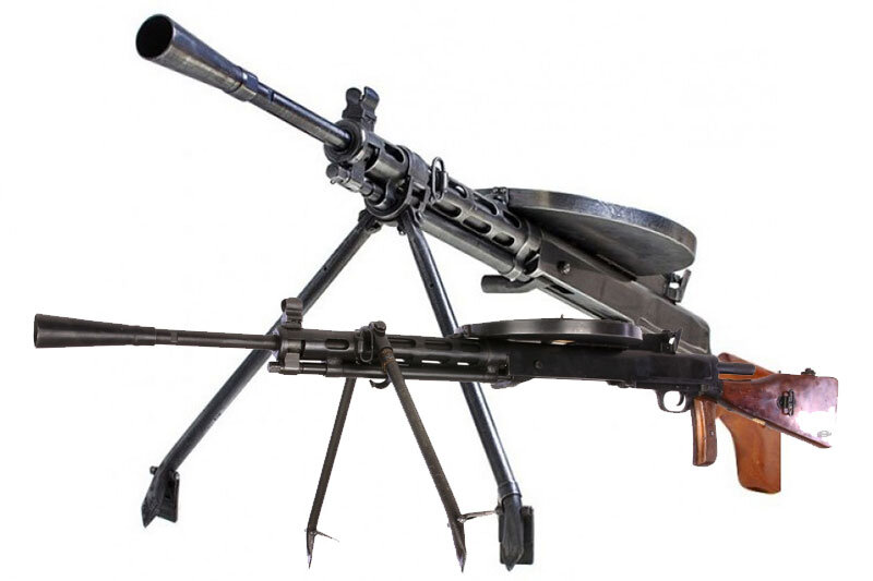 Пехотный пулемёт Дегтярёва (ДП) известен с 1928 года. Он массово использовался в советской армии. Не удивительно, ведь был выпущено почти 800 тысяч штук. В самом конце войны, в 1944 году, пулемёт ДП прошёл модернизацию (стал называться ДПМ). Однако, когда война закончилась, ДП и ДПМ сняли с вооружения. Но в дружественных странах он оставался в строю до конца шестидесятых. Ручной пулемёт ДП является оружием с автоматикой на основе отвода пороховых газов и магазинным питанием. Газовый двигатель имеет поршень с длинным рабочим ходом и газовый регулятор, расположенные под стволом. Сам ствол — легкосъёмный, частично скрыт защитным кожухом и оснащён коническим съёмным пламегасителем (ранние выпуски не имели пламегасителя, как и резьбы на стволе для него). Огонь из ДП вёлся со съёмной двуногой сошки, сошки в горячке боя порой терялись из-за неудачного крепления или расшатывались, что, в свою очередь, существенно ухудшало удобство применения и устойчивость пулемётов. Поэтому на ДПМ ввели не