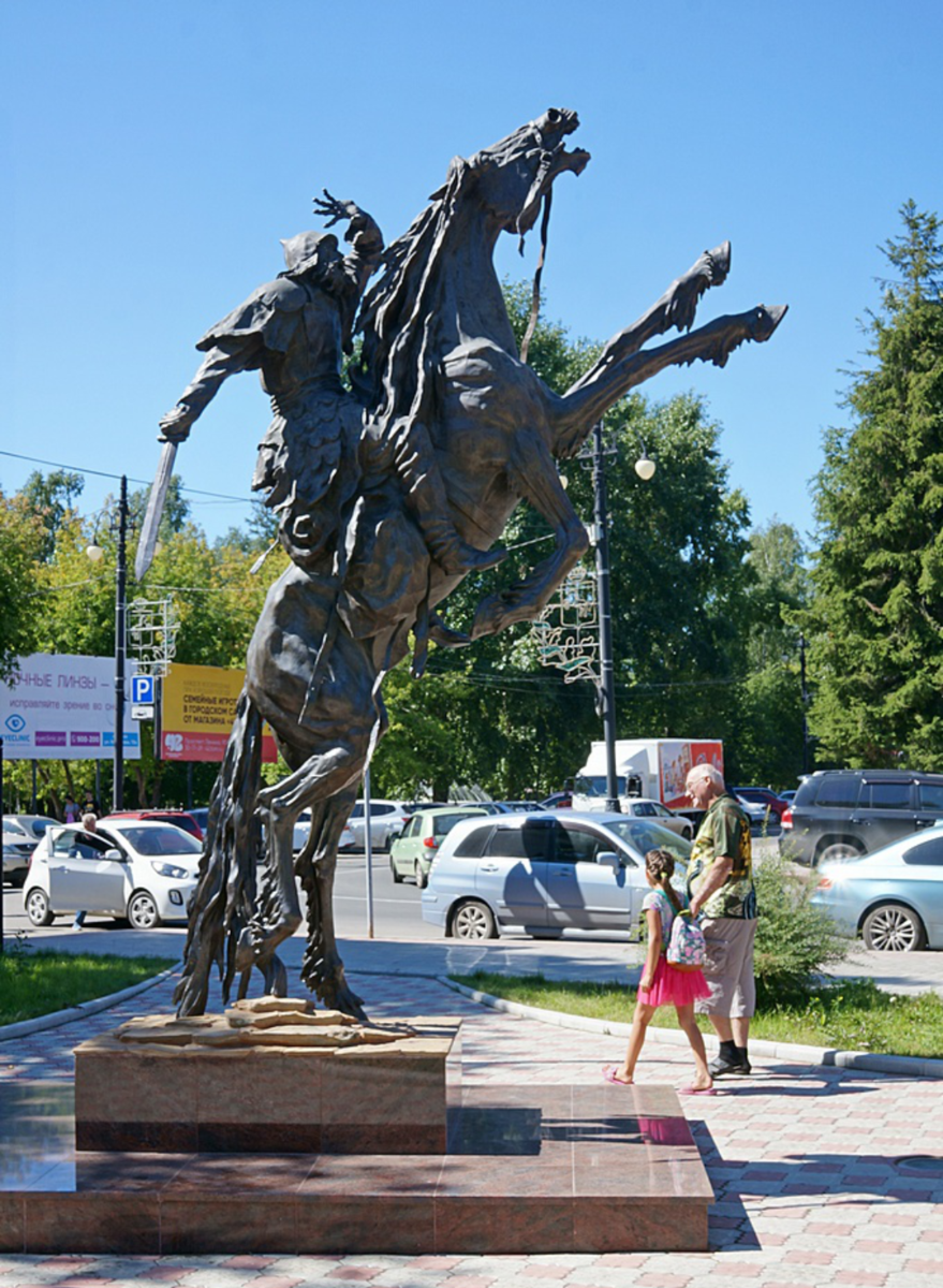 Как вам пятиногий конь? Необычно, правда? Если вы не были в Томске и не знаете об этой скульптуре, то нужно пояснить, что называется она «Покорение Сибири», а восседает на коне – Ермак! Когда жителям Томска огласили эту информацию и презентовали памятник, они, мягко скажем, удивились. Во-первых, почему такое количество ног, во-вторых какое отношение завоеватель Сибири имеет к Томску, ведь они даже «не виделись» (Ермак погиб в 1585 году, Томский острог заложили в 1604-ом). Образ казака и внешний вид коня на фоне основных вопросов уже были не так значимы. Председатель Томского регионального отделения «Союза архитекторов России» Сергей Худяков так прокомментировал идею скульптуры: «В одной из легенд народов, которые населяют север Томской области, есть такое предание об этом странном животном (с пятью лапами). По легенде, оно не каждому видится, оно предвосхищает гениальность человека, его нестандартность, оригинальность. Этот зверь выбирает великого человека, который является исключени