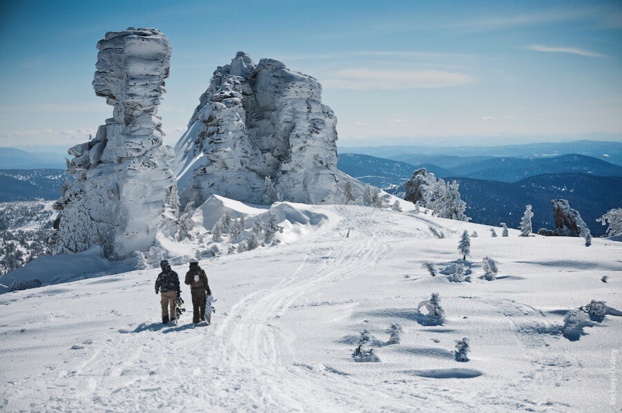 «Каменные верблюды» - это скалы-останцы на склоне горы Курган. Образовались они в процессе выхода магмы на земную поверхность, а в дальнейшем приобрели свои очертания под воздействием ветров, морозов и дождей. В свою очередь, гора Курган является одной из четырех других гор (Мустаг, Зелёная и Утуя), которые вместе образуют горнолыжный курорт – Шерегеш, названый в честь одноименной деревни у подножия горы – Зеленая. Сейчас пойдем еще дальше: Шерегеш находится на территории Горной Шории – это горно-таёжный регион, расположенный в южной части Кемеровской области на стыке Алтая, Саян и Кузнецкого Алатау. Курорт Шерегеш хорошо знаком любителям горных лыж и сноуборда. Он считается одним из лучших в стране и крупнейшим во всей Сибири, ежегодно его посещает более 1 млн человек. Сочетание уникальных климатических условий Горной Шории формирует снег, называемый «пухляком» по причине его особой структуры. Снег в Шерегеше мягкий и пушистый. Он не твердеет и почти не обваливается, что не только