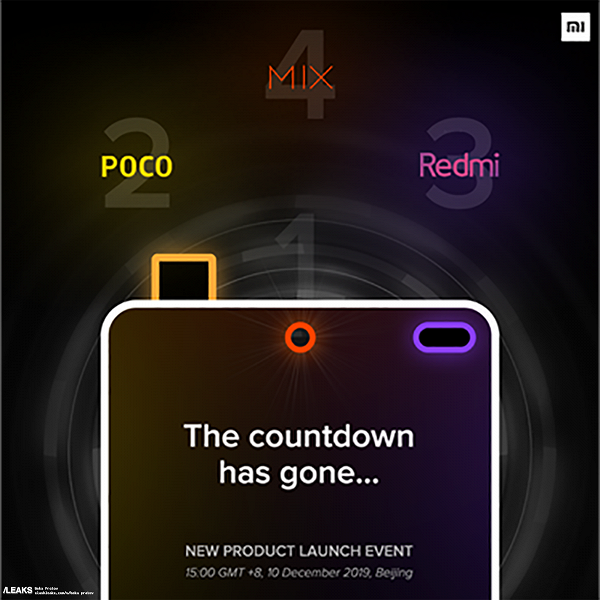 Но это не все, что несет в себе информация с официального изображения: на тизере показан обратный отсчет, содержащий название и двух других устройств. Дополняют весь набор Mi Mix 4, обозначенный цифрой 4 и смартфон Pocophone F2, определенный под цифру 2. Однако, маловероятно, что все три смартфона будут анонсированы за один день. 10-го декабря ожидается пока только Redmi K30, и возможно, в этот день назовут даты