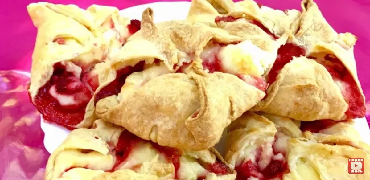 Эти чудесные слойки хорошо подавать к кофе или чаю. А можно подкрепиться ими и в перерывах между едой. А сколько вариантов поэкспериментировать с начинкой!!! ИНГРЕДИЕНТЫ: Слоёное тесто 250 гр. Творог 300 гр. Ягоды (любые)/ягодное варенье, джем 150 гр. Сахар 120 гр. Ванильный сахар 1 ч. л. Крахмал 1ст. л. с горкой Сметана 1ст.л ********************************** В конце публикации будет ВИДЕО СЛОЕК на моём YOUTUBE КАНАЛЕ «ДОМАШНИЕ СОВЕТЫ» bitly.su/03EAF14O. А сейчас, ПОШАГОВЫЙ РЕЦЕПТ: 1. Соединить творог, сметану, сахар, ванильный сахар. Перемешать. Перебить блендером до пастообразного состояния. 2. Слоённое тесто раскатать до 0,2 см. Разрезать на квадраты. На "заготовках" сделать надрезы (как на фото). 3. На "заготовки" выложить ягодки (джем, варенье). Сверху положить творожную смесь. 4. Завернуть края. Отправить в заранее разогретую на 200 градусов духовку, на 15-20 минут. И ВСЁ!!! Наши слойки готовы! Если вам понравилась ИДЕЯ, ставьте лайк, поделитесь этим ВИ