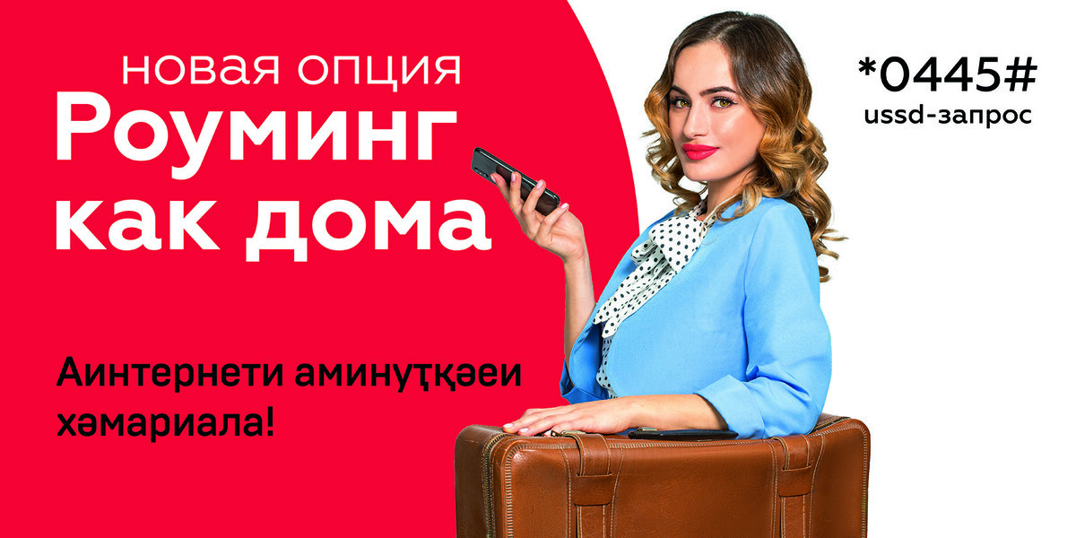 Дорогие друзья! С приходом сезона отпусков и праздников все больше людей стремится вырваться из привычной среды и получить новые впечатления в поездках за рубежом. И непременно поделиться ими с близкими. А так как чаще всего мы это делаем посредством телефона, мы подготовили для вас оптимальное предложение для поездок по России. Встречайте новую опцию "Роуминг как дома", которая включает в себя на выбор два пакета - минут и мегабайтов. Срок действия пакетов - сутки и трое суток. Узнайте более подробную информацию на официальном сайте www.a-mobile.biz. Подключайте "Роуминг как дома" и не ограничивайте себя в общении в поездках по России.