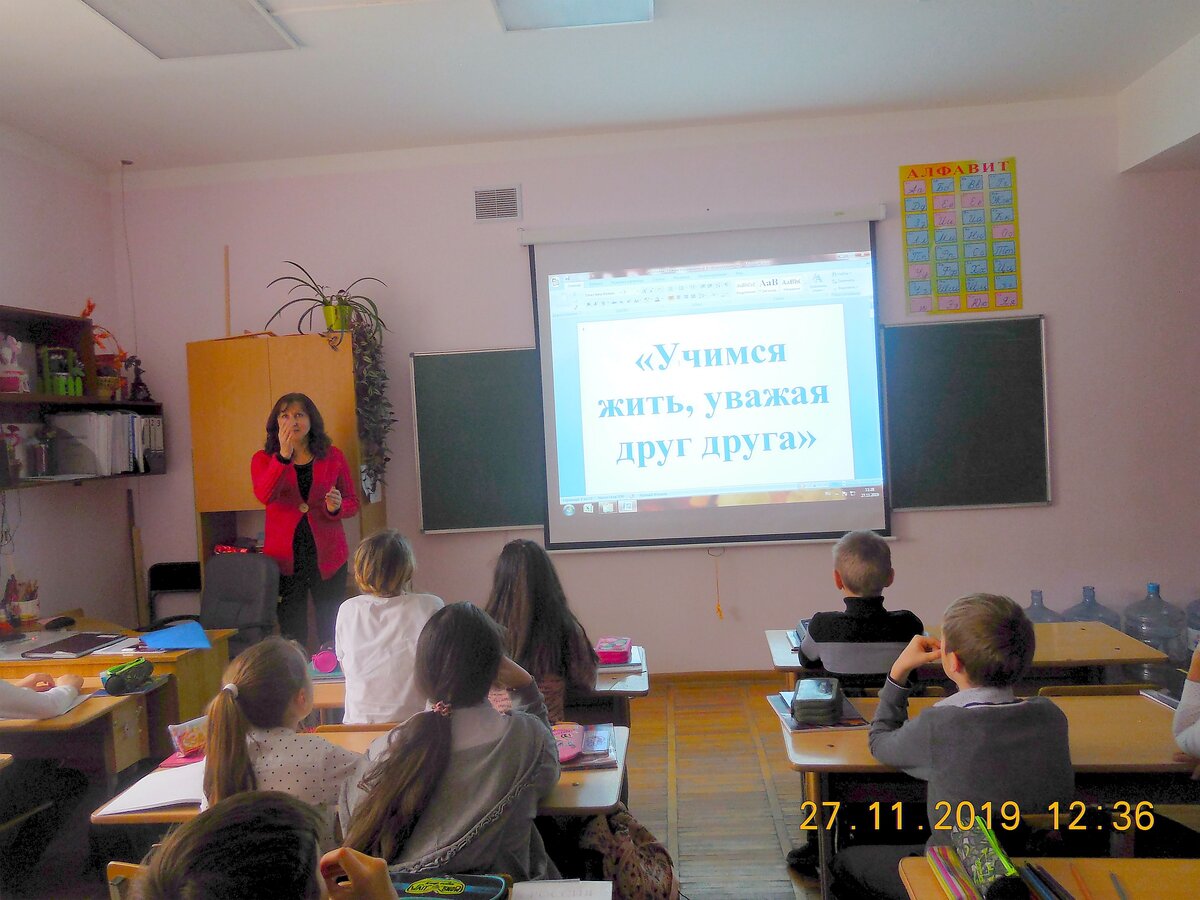 Давайте станем чуточку добрее, Чуть проще, чище, бережней к другим. И станет всё прекрасней и светлее – Мы новый мир любовью создадим. Главное правило: относись к людям так, как ты хочешь, чтобы люди относились к тебе. Эта тема актуальна и в наше время. Сотрудники библиотеки-филиала № 1 провели в МБОУ СОШ № 9 урок доброты на тему – «Учимся жить, уважая друг друга». В ходе мероприятия библиотекарь с ребятами говорили о самовоспитании положительного отношения к себе, друзьям, одноклассникам, своим близким, желании и умении прощать. Обсудили различные взаимоотношения, научились анализировать конфликтные ситуации и разрешать конфликты, улаживать ссоры, преодолевать разногласия, которые могут возникнуть в жизни и в будущей профессиональной деятельности. Не надо забывать также об «особых людях» - людях с ограниченными возможностями здоровья. Как мы можем помочь им? Надо ли беречь свое здоровье и здоровье окружающих? Что нужно делать, чтобы быть здоровым? Библиотекарь рассказала о людях, кот