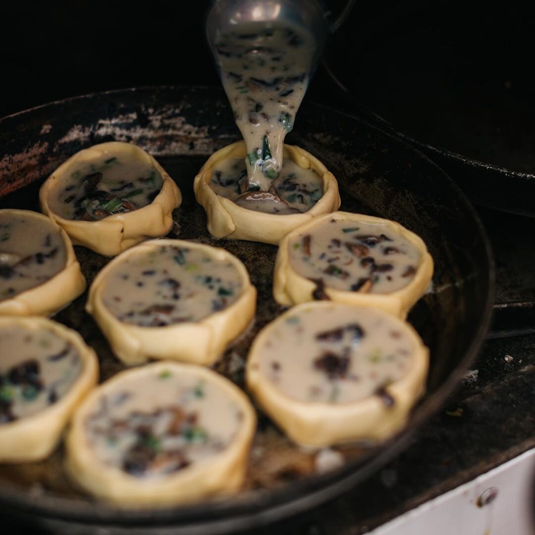 Приготовить удмуртские корзиночки не составит труда. Необходимо перемешать сливочное масло с яйцами и сметаной, посолить и довести до однородного состояния. В перемешанную смесь пшеничной и ржаной муки добавить разрыхлитель, после чего уже приготовленную массу. Тесто аккуратно замесить и дать настояться. Для начинки используют любые грибы, измельчают вместе с луком и обжаривают на сливочном масле. После остывания добавляют несколько ложек сметаны с пряными травами. Для заливки используют яйца и сметану. Пришло время раскатывать лепешки и делать корзиночки. В смазанный маслом противень укладываются перепечи и наполняются грибной начинкой, поливаются яично-сметанной смесью. После 20-минутного выпекания блюдо готово к подаче на стол. Из указанного количества продуктов получается 10 больших корзиночек. Грибную начинку можно заменить на яичную или картофельную.