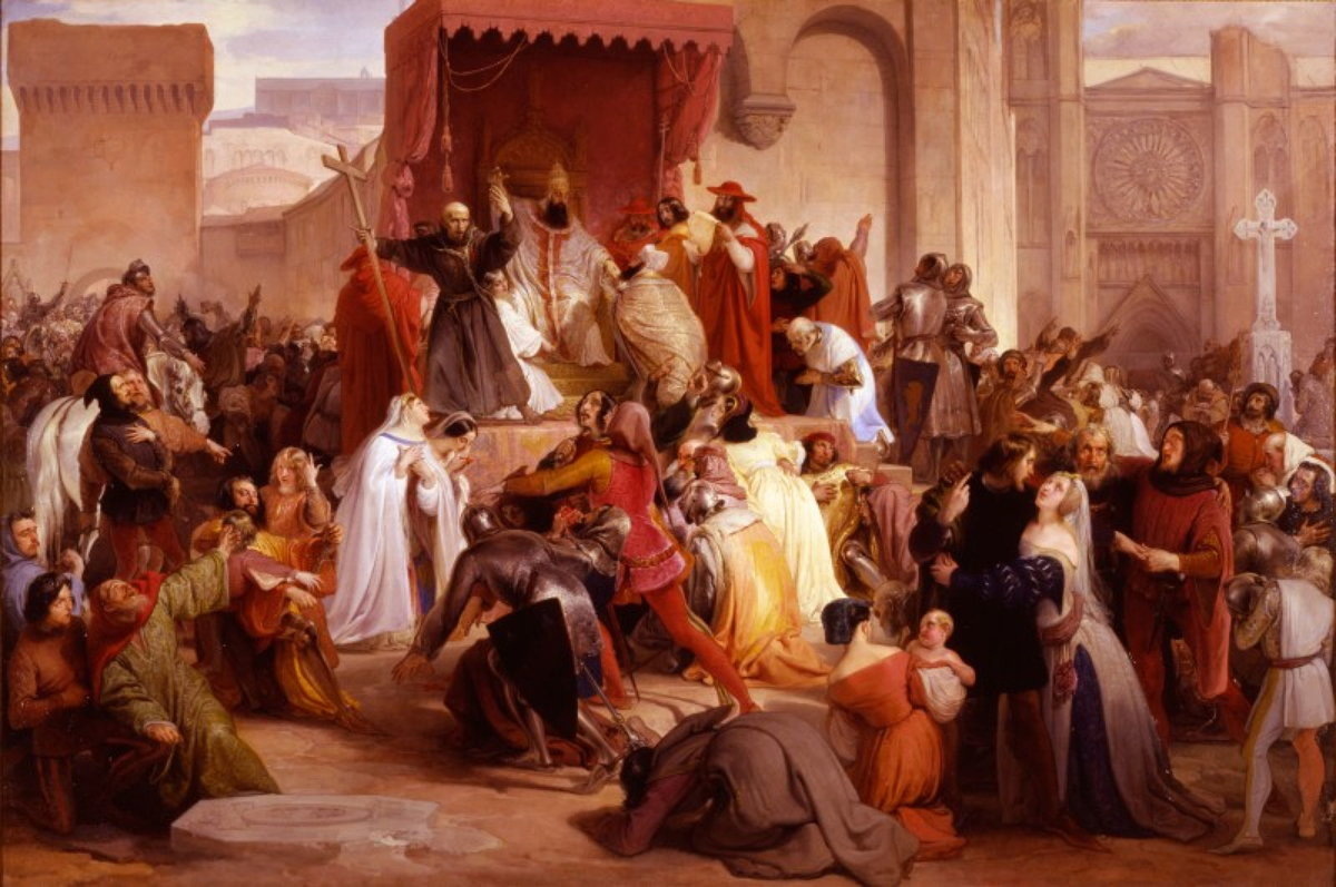 …Дело происходило во Франции, на Клермонском соборе (ныне город Клермон-Ферран) – а речь перед многочисленной аудиторией держал сам папа римский. Согласно источникам, понтифик, в сияющем золотым шитьём и драгоценными камнями облачении, вещал с помоста в открытом поле – а внимали ему примерно двадцать тысяч всякого люда; от рыцарей до голытьбы.