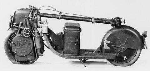 История технологического развития знает много хороших идей, которые, имея все для коммерческого успеха, так и не достигли его. Eveready Autoped является одним из таких устройств - это был первый в мире скутер, изготавливаемый в Нью-Йорке с 1915 по 1921 год. Всего за 100 долларов он умел двигаться со скоростью 40 км/ч, потребляя при этом 1,9 л бензина на 100 км. Eveready Autoped, можно сказать, «дедушка» всех мотороллеров-скутеров. Интересно, что большая часть маркетинга Autoped была сосредоточена на женщинах и для женщин, совсем как поступили те же Vespa или Honda - женщины были в центре внимания рекламы итальянских мотороллеров в 1960-х годах, а чуть позже и японских скутеров. Разработки, стоящие за появлением Autoped, является одновременно надежными и инновационными. В доказательство - патент Артура Хьюго Сесила Гибсона на Autoped, который можно увидеть сегодня в Интернете. Все было просто: мотор, объемом сто пятьдесят пять куб.см, имел воздушное охлаждение и размещался над передн